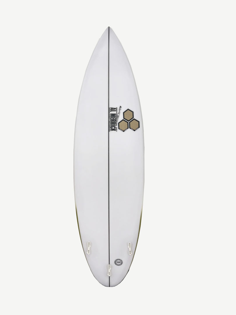 The Goldie is designed for maximising time in the barrel in steep, heavy waves. First ridden by Barron Mamiya to victory at the 2024 Pipe Pro and then on his rode to victory at the 2025 Pipe Pro, the board has been tested and proven by the team globally to be our best heavy wave and barrel board. Thickness forward and under the chest enhances paddling power while a refined foil out the back allows for stability and control when you need it most. More rocker than a Happy Traveler but less than the CI Pro Step Up, the Goldie maximises down the line speed and drive. Ridden as a step up, start using the Goldie at 2" above your shortboard.