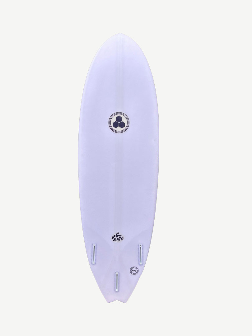 Their goal was to create something fresh feeling that turned well in good surf but skated with ease through the not-so-good stuff. There was one major stipulation during its development: the G Skate had to still perform at the highest of levels possible. They achieved this by shortening their typical shortboard rail line by 5" and adding curves and contours in key places that would keep them on top of the water and not hinder their turns in any way. Adding a 2 + 1 (twin plus trailer) fin set-up tied the whole concept together.