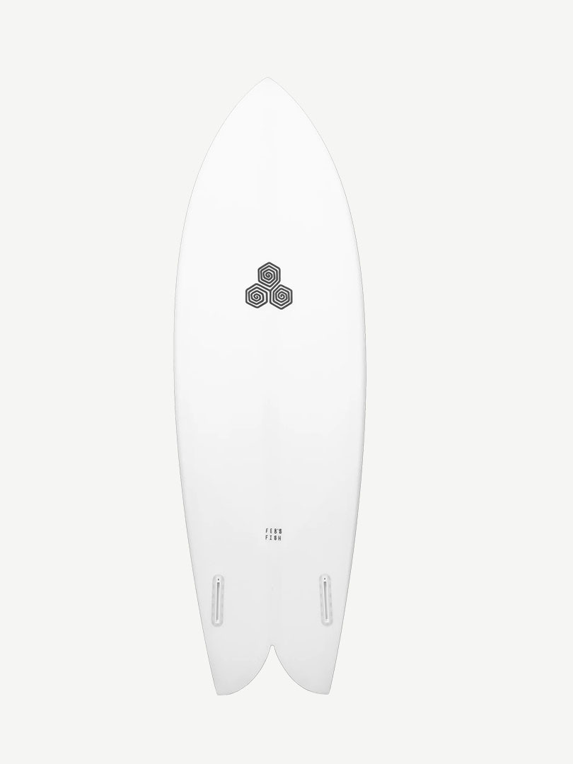 For sizing reference on the Feb's Fish, Mikey is 6'3, 75kgs and rides the 5'5 in stock dims.